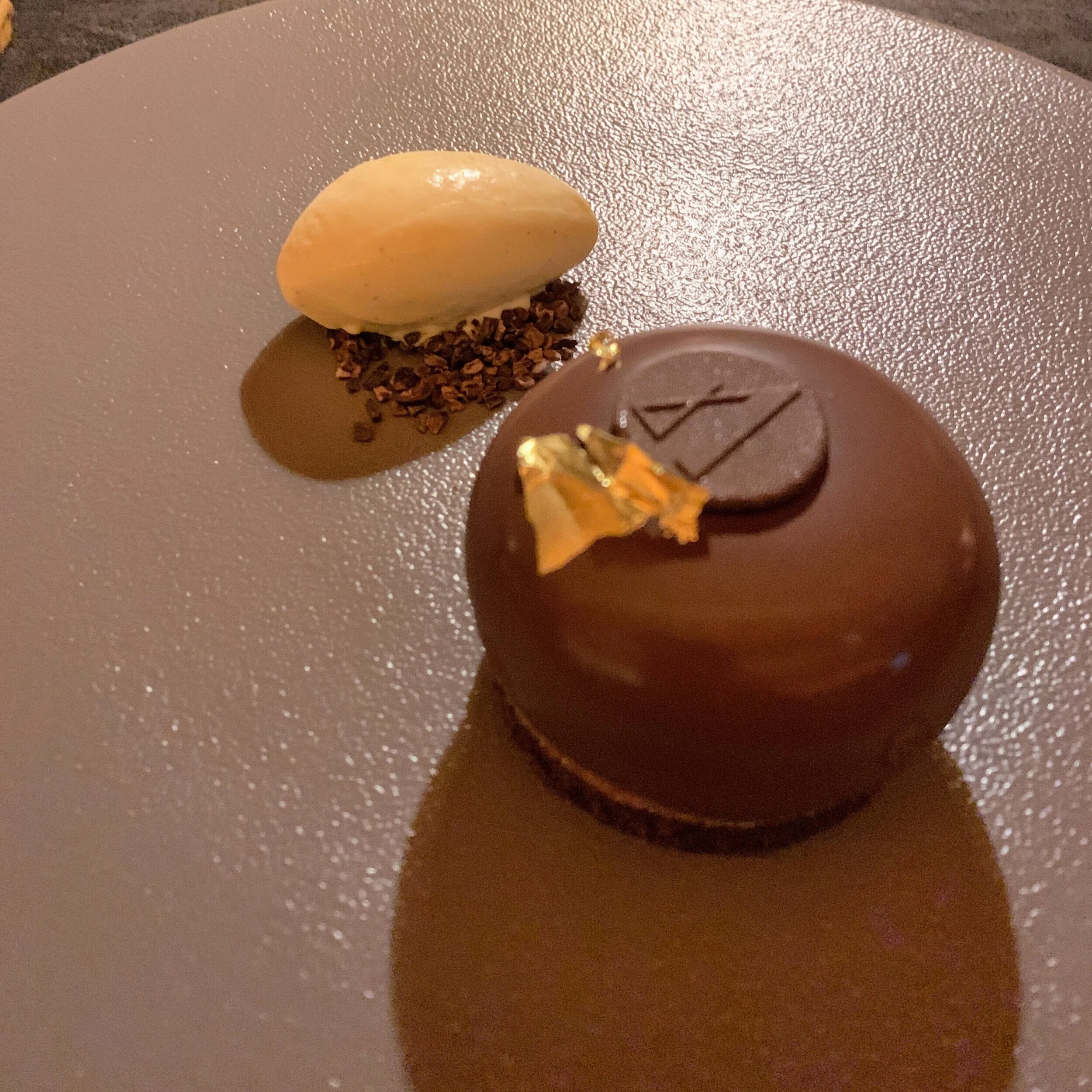 Chocolate Mousse, Peanut Praline, Feuilletine, Vanilla Ice Cream